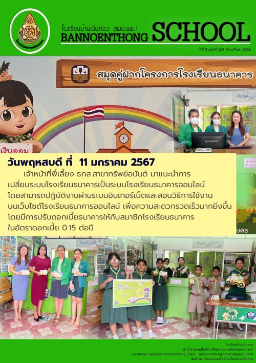 กิจกรรมโรงเรียนธนาคารบ้านเนินทองออนไลน์