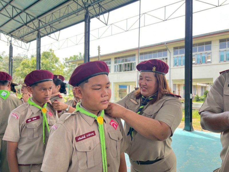 พิธีเข้าประจำกองและประดับอินธนูลูกเสือ-เนตรนารี ชั้น ม.1 ประจำปี 2568