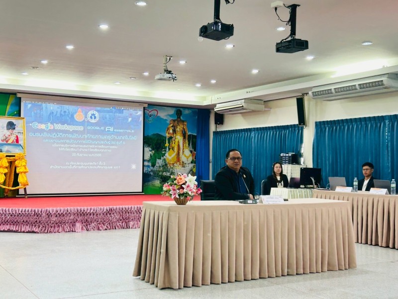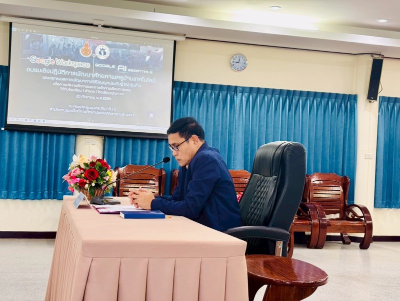 เข้าร่วมการอบรมเชิงปฏิบัติการพัฒนาศักยภาพครูด้านเทคโนโลยีและขยายผลการพัฒนาการใช้ปัญญประดิษฐ์ (AI) รุ่นที่ 4 เพื่อบริหารการจัดและการเรียนการสอนให้กับโรงเรียน 1 อำเภอ 1 โรงเรียนคุณภาพ ณ ห้องประชุมขุนกระทิง