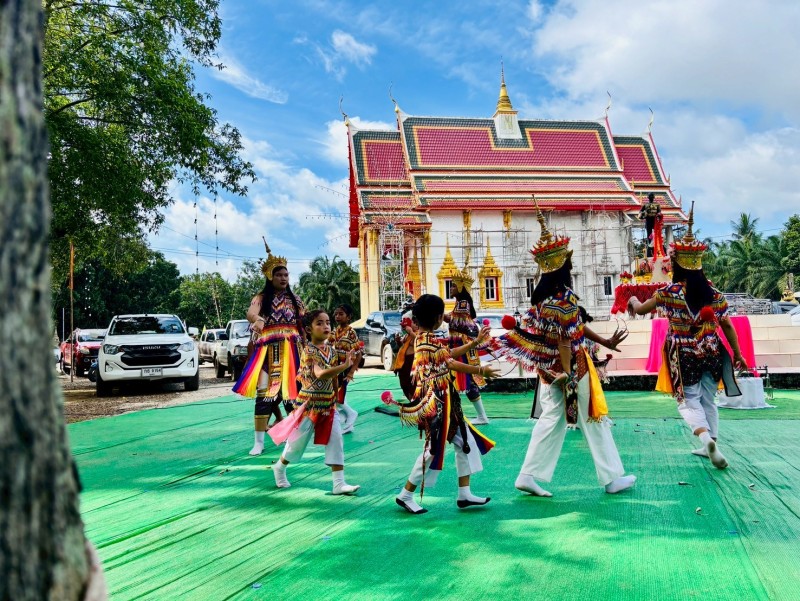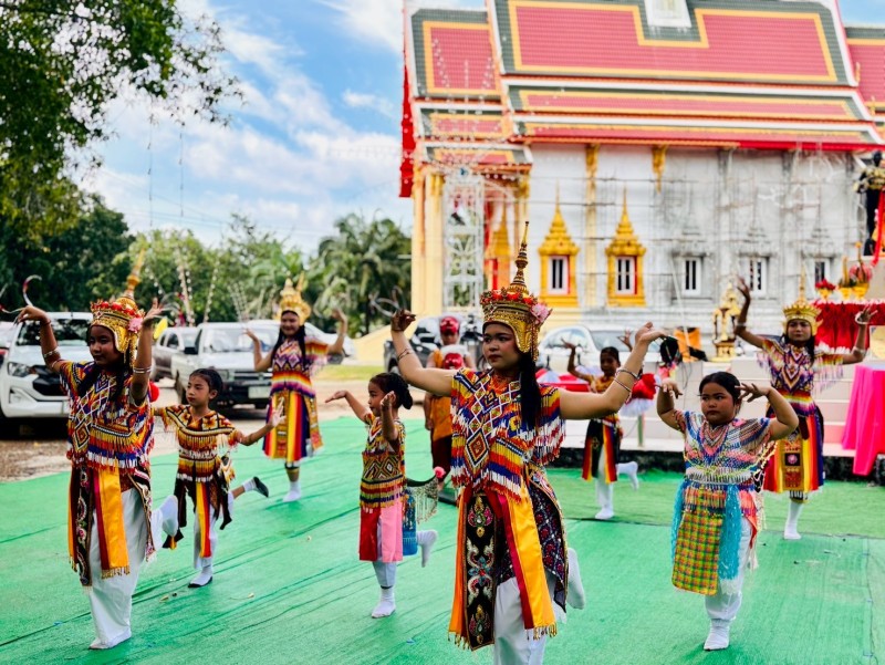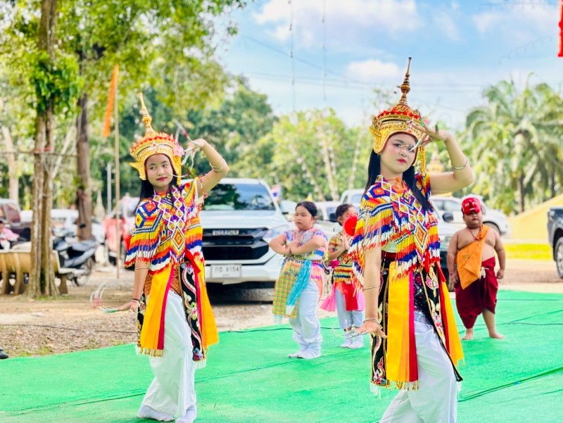 ทางคณะครูได้นำมโนราห์เข้าร่วมพิธีเปิด งานประเพณีส่งตา-ยายตามสายน้ำ ณ วัดเนินทอง