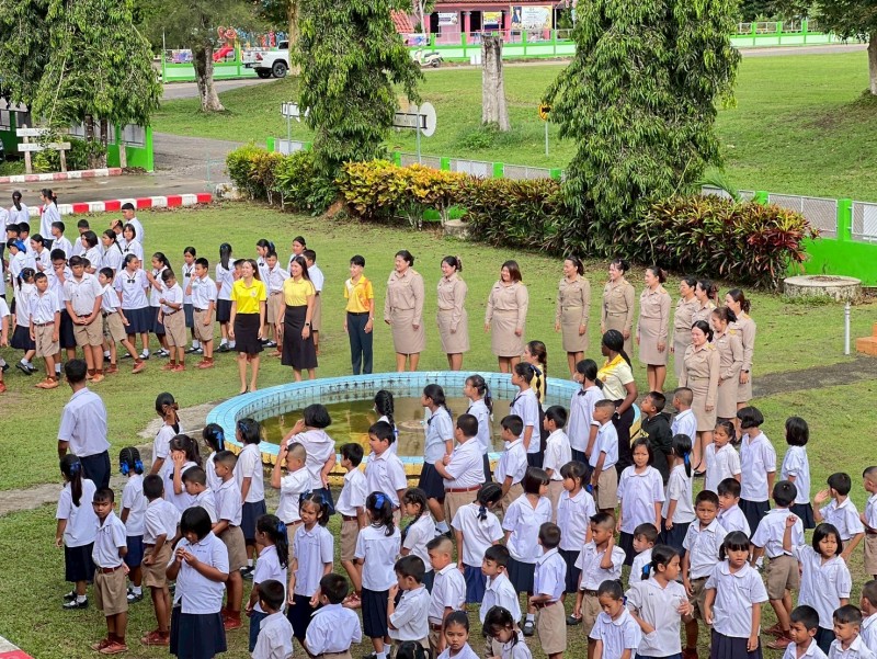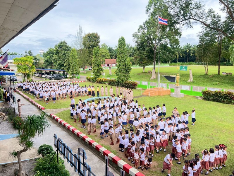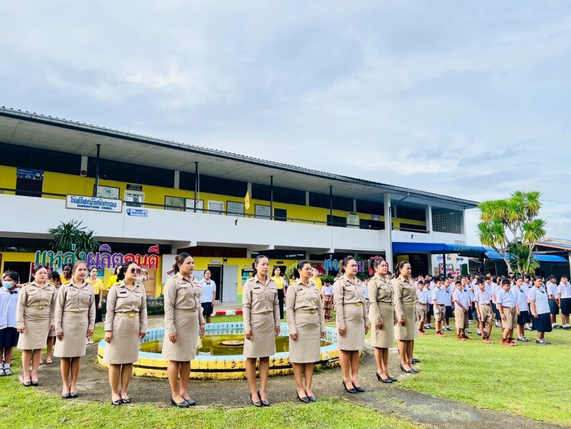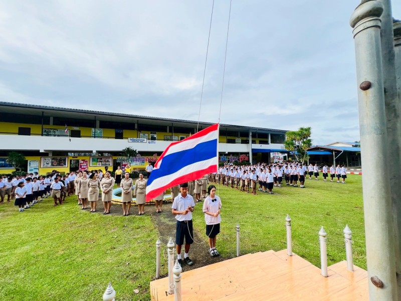 ผู้บริหาร คณะครู บุคลากรทางการศึกษาและนักเรียน ได้จัดกิจกรรมเคารพธงชาติและร้องเพลงชาติไทย เนื่องในวันพระราชทานธงชาติไทย 28 กันยายน ประจำปี พ.ศ. 2568