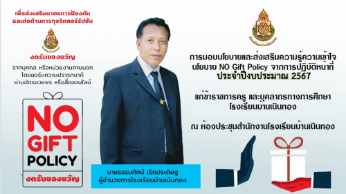 การสร้่างวัฒนธรรม No Gift Policy โรงเรียนบ้านเนินทอง