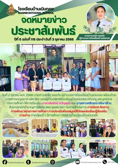 ต้อนรับ คณะศึกษานิเทศก์ชำนาญการพิเศษ สพป. ชุมพร เขต 1 ในการนิเทศ ติดตาม การพัฒนาคุณภาพการศึกษา การประเมินห้องสมุดมีชีวิตแหล่งเรียนรู้ส่งเสริมการอ่าน ภาคเรียนที่ 1 ปีการศึกษา 2568