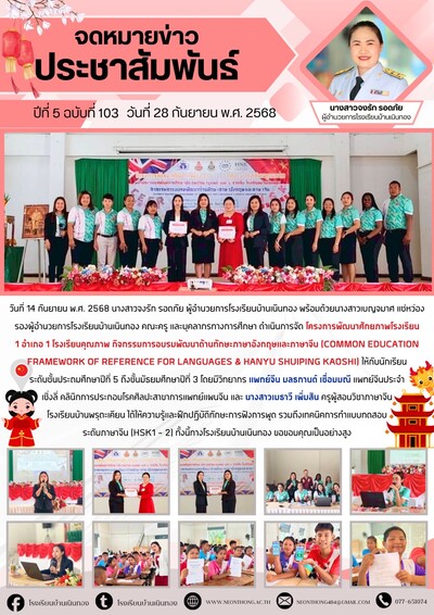 โครงการพัฒนาศักยภาพโรงเรียน 1 อำเภอ 1 โรงเรียนคุณภาพ กิจกรรมการอบรมพัฒนาด้านทักษะภาษาอังกฤษและภาษาจีน ให้กับนักเรียนระดับชั้นประถมศึกษาปีที่ 5 ถึงชั้นมัธยมศึกษาปีที่ 3